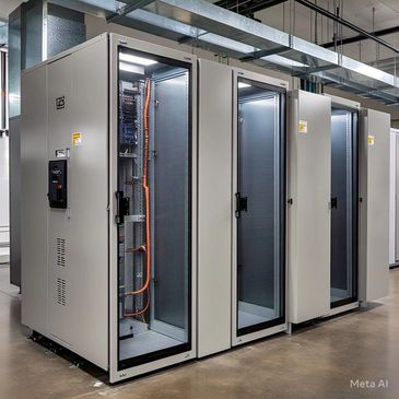 Network and Server Racks For Data Centers with in row and in rack cooling solutions.